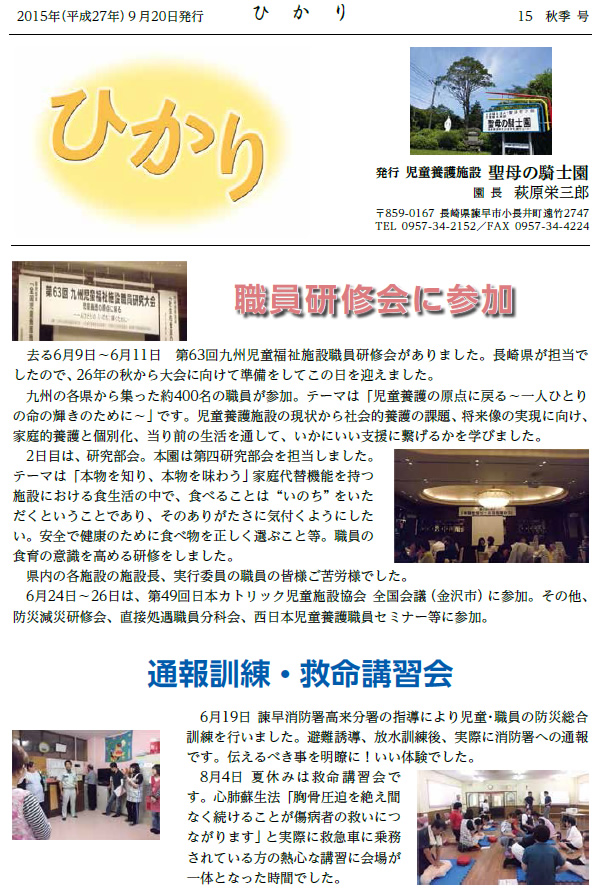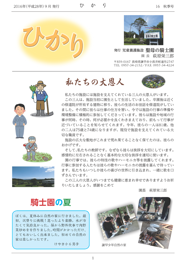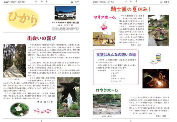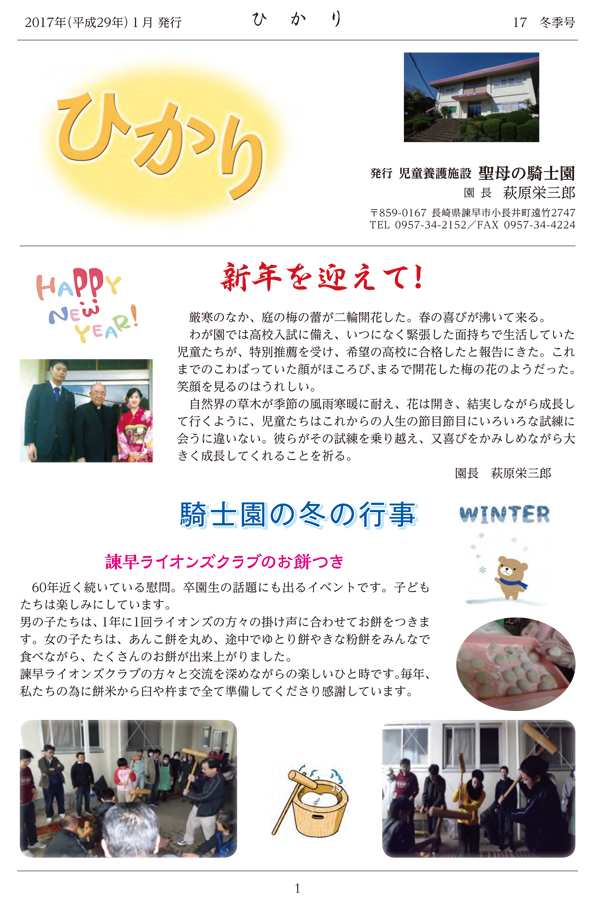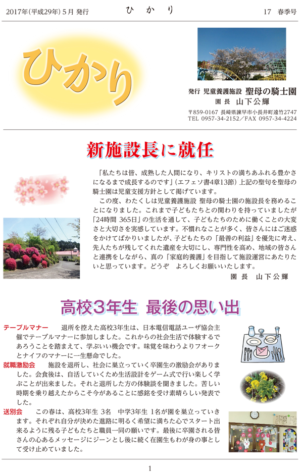 今年、本園の児童8名が社会に巣立つ。彼らが本園に入所した当時不安もあったのだろうが、どこかひ弱な感じを受けた。しかし、彼らが園生活にも慣れ、日々たくましく成長して、今、それぞれの目標に向かって進もうとしている姿は頼もしく見える。彼らは、これまでに経験したことのない未知の世界へ飛び立とうとしている。